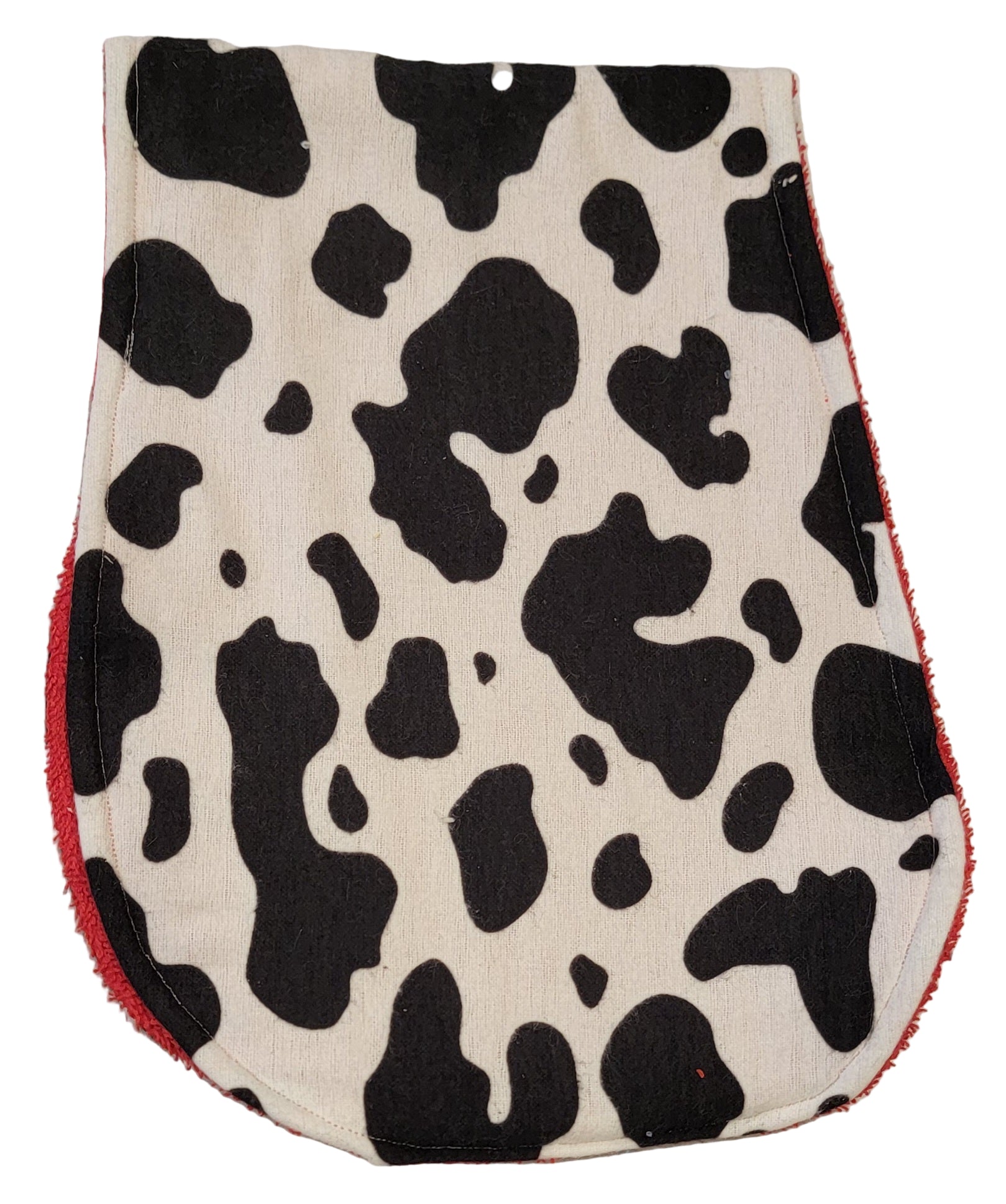 Contoured burp cloth made of terry cloth and snuggle flannel.
