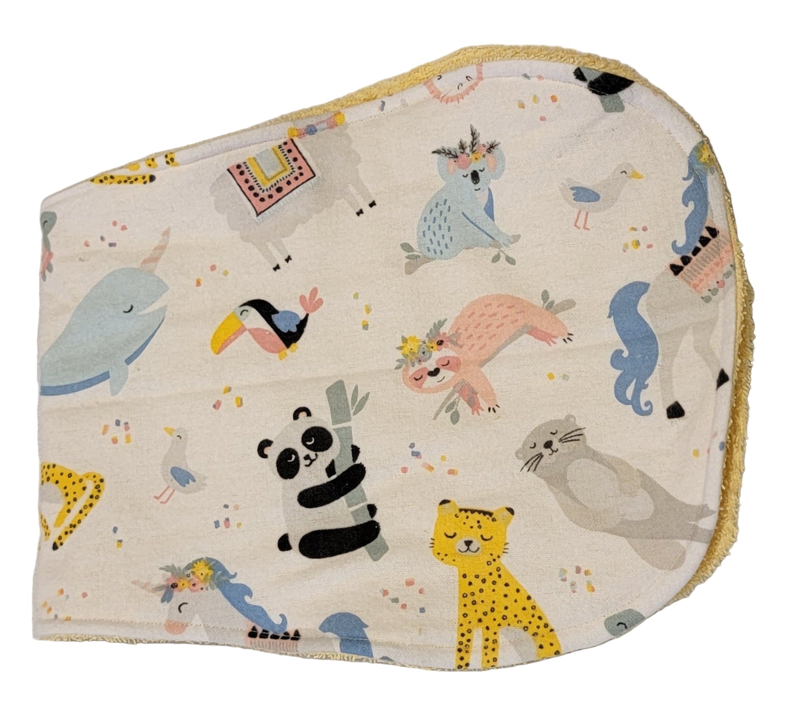 Contoured burp cloth made of terry cloth and snuggle flannel.